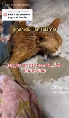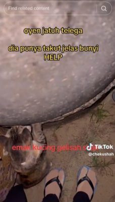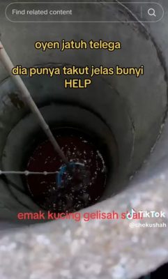 根据男子@chekushah发布的TikTok视频,一只橘色的猫咪在掉进井里后,一群人急着将猫咪营救上来,并将一个塑料篮子放入井内,尝试捞出挣扎中的猫咪。