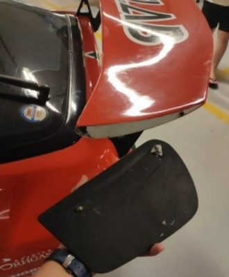 根据NaraMedia报道,一辆“RX-7 FDF3S”扰流板上的碳纤维尾翼遭到破坏,尾翼上整片碳纤维被撞至脱落,据说是有出席者在奔跑时撞到并毁坏。