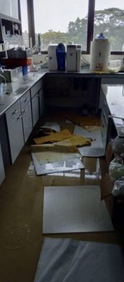 (八打灵再也1日讯)双溪毛糯国家公共卫生实验室今午因天花板漏水导致室内的化学物泄漏,惊动消防与拯救局到场清理,所幸没有造成伤亡。