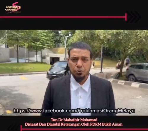 马哈迪代表律师拉菲克于今午通过脸书专页“InspirasiChannel”上载为时1分钟15秒的短视频,指他于今早11时30分至午间12时30分的时段,陪同敦马到武吉安曼警察总部录供。