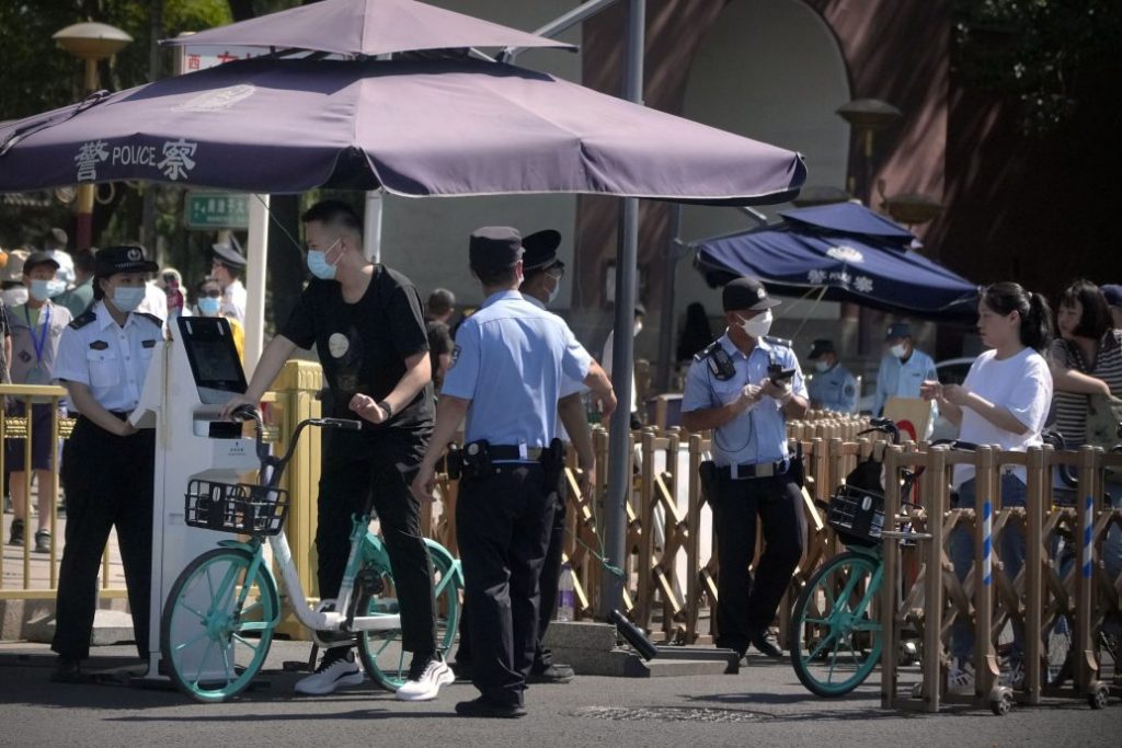(香港3日综合电)六四事件34周年前夕,中国公安周六在北京天安门广场一带加强戒备和搜查往来行人。