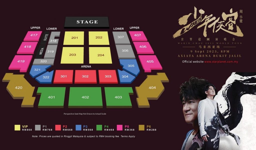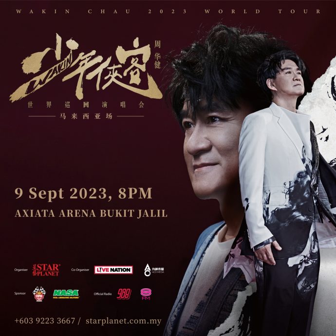 由Star Planet星艺娱乐主办,Live Nation和ACO有种传媒联办,《周华健少年侠客世界巡回马来西亚站演唱会》将于9月9日晚上8时,在吉隆坡亚通体育馆登场。门票将于6月16日下午2时公开发售,票价分为868令吉、768令吉、668令吉、568令吉、468令吉、368令吉和288令吉,更多详情,请浏览 starplanet.com.my 或拨打热线03-9223 3667查询。