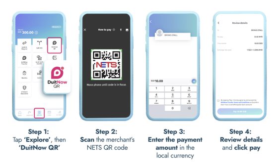 通过最新的DuitNow跨境QR支付功能,大马旅客无需携带太多现金出门,只需扫描新加坡NETS的SGQR二维码,或泰国PromptPay的二维码,就能轻松购物付款。