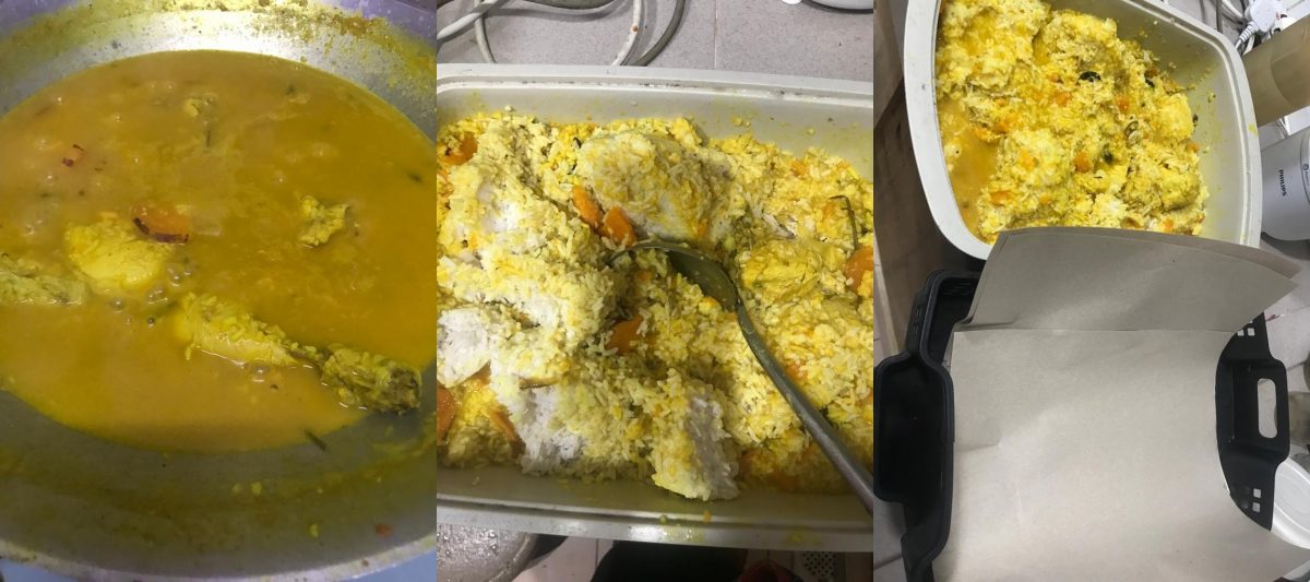 她所烹煮的包括鸡肉、牛肉和江鱼仔混合的杂食。
