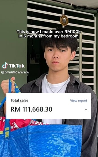 他通过Tiktok账号@bryanlowwww分享,他如何在5个月内窝在睡房“创业”,就创下6位数业绩。
