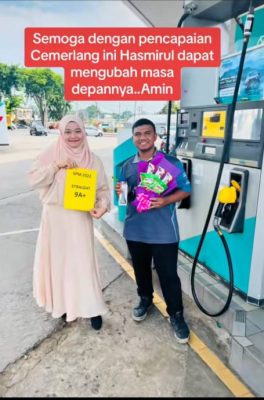 在吉打本同经营Petronas添油站的西蒂努上载一段自己从日本买礼物奖励员工的视频,该员工哈斯米鲁在SPM中考获9A+佳绩。