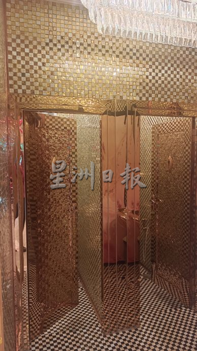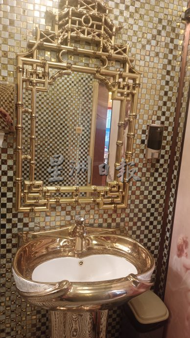 据悉,翠华楼的东主单是为了打造黄就耗资逾两万令吉。厕所共有两间,从马桶、厕纸架及墙壁都是金色,甚至厕所外的洗手盆及浴室镜框都是金色。