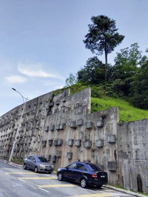 一般建筑在山坡地带的发展项目进行土石方平整(earthworks,俗称泥工)工程时,必须修建防护墙,以防山体崩塌或造成严重的泥石流。