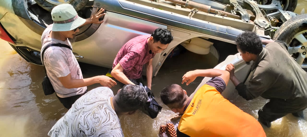 (关丹17日讯)来自文德甲的60岁女瑜伽教练今早驾驶四轮驱动车离开双溪热力,路经陆布右(Lubuk Yu)路时失控撞进河中导致四轮朝天,女司机被路人击破车镜救出时已返魂乏术。