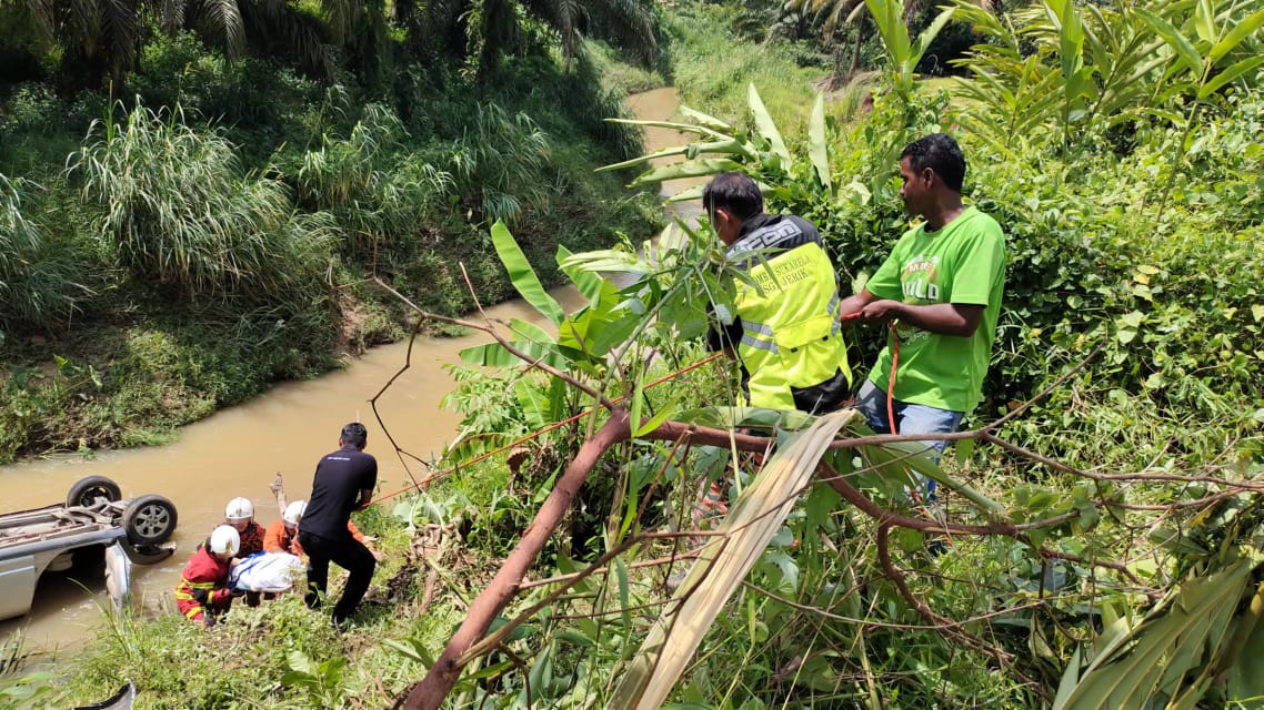 彭亨消拯局发出文告指出,该局是在上午11时34分接获投报后赶到案发现场,发现河中有一辆四辆朝天的四轮驱动车,而车中女司机较早时已被路人移出置放在岸边,而卫生部也证实女司机已经丧命。