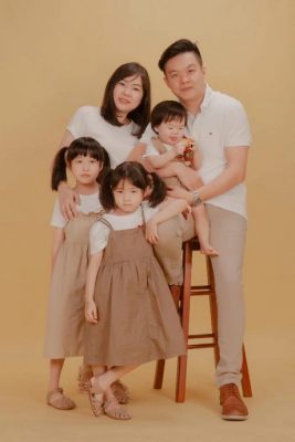 他和太太龚意淋育有3名女儿,年龄分别是9岁的欧丽、6岁的媞亚和1岁半的佐佳。太太负责照顾老大,他则负责老二和老三的生活起居。