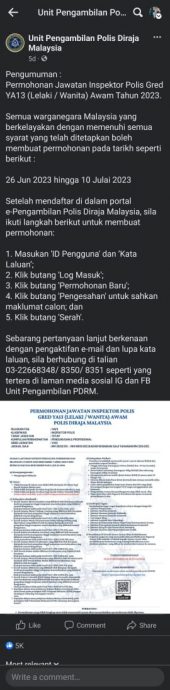有意者可浏览招聘组脸书专页https://www.facebook.com/Unitpengambilan/posts/pfbid0b9GHaWEYhhk72S7Vs1oyWJgG19fBDQUZYLMWZ288F4z5HAGZ65iu8kbRmEeDRLZQl,并扫描招聘启事内的二维码,以在线上提交申请表格。