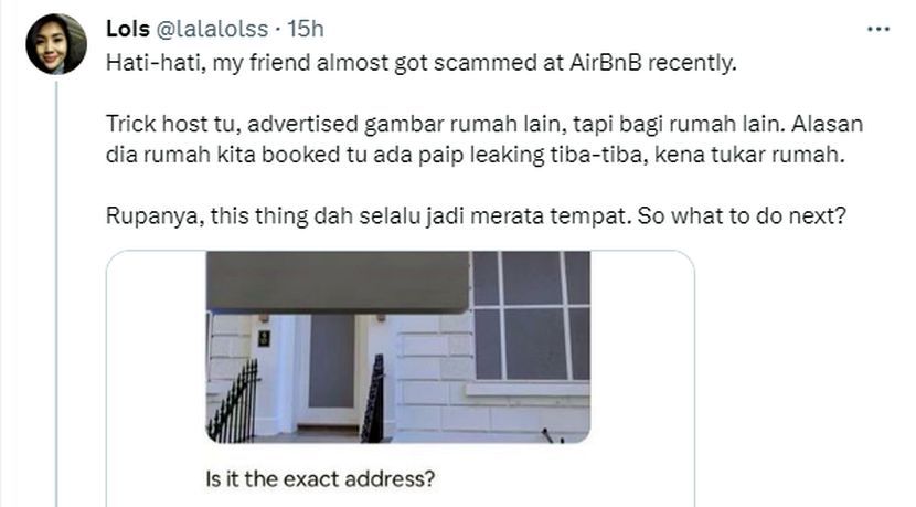 Hati-hati, my friend almost got scammed at AirBnB recently.