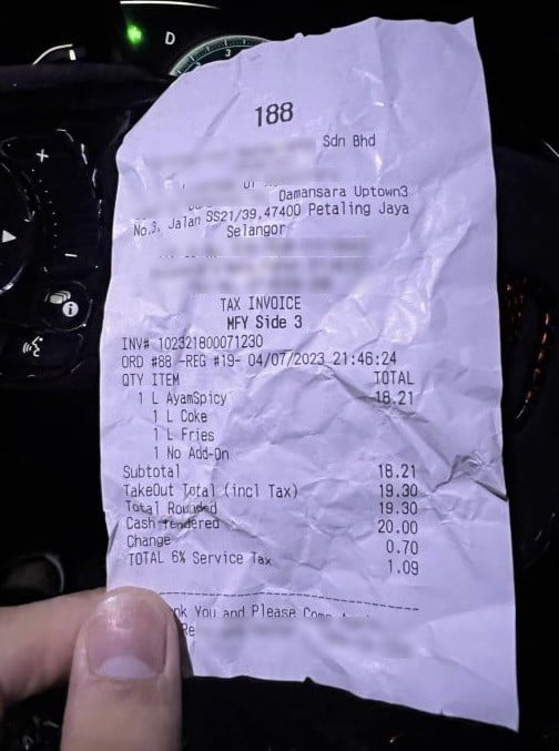 根据该脸书上传的收据,涉事的麦当劳位于白沙罗上城。