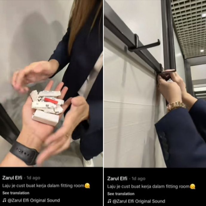 TikTok帐号@_zarulelfy昨天上载一段34秒视频,指有“顾客”在试衣间内“办事”神速,意指小偷神不知鬼不觉地在试衣时偷窃。