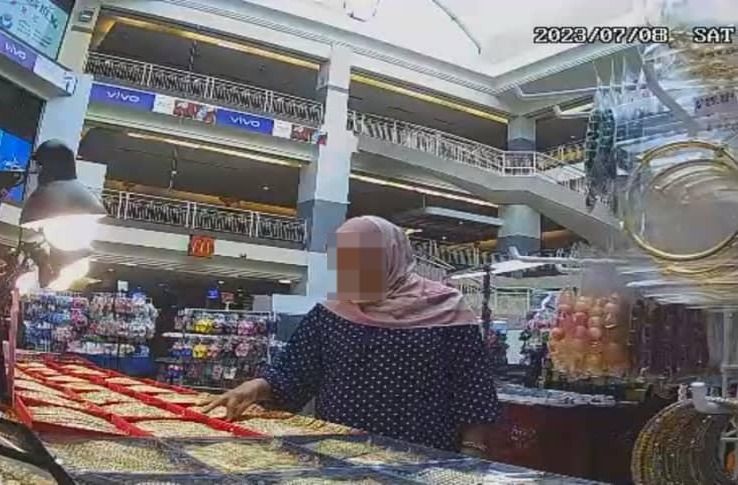 (八打灵再也9日讯)一名中年妇女被发现在关丹百利广场(Kuantan Parade)某摊位擅自取走一条金饰,业者劝对方在她还没报警之前,赶快将金饰归还。