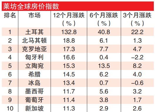 莱坊称:“虽然土耳其以132.8%的惊人年增长率位居榜首,但涨幅在很大程度上是由畸高的通货膨胀所致。”