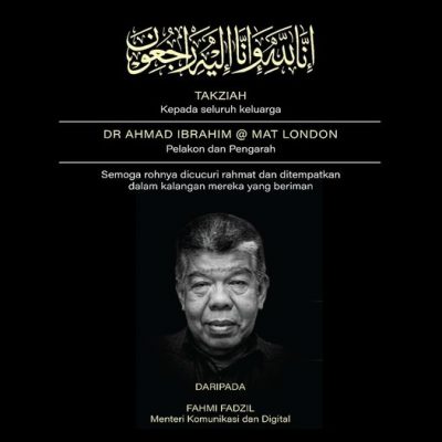 (吉隆坡14日讯)数字通讯部长法米向因肺病去世的马来西亚电影导演协会(FDAM)主席阿末依布拉欣,即著名艺人末伦敦(Mat London)致哀,并慰问其家人。