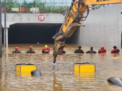 韩联社报道,消防部门在忠清北道清州市五松宮坪地下车道再打捞出四具尸体,该地下车道被淹事故的死亡人数目前已增至13人,九人受伤,十多辆汽车被淹。另外,世宗市一人死亡,忠清南道四人死亡,庆尚北道19人死亡;釜山市一人失踪,庆尚北道八人失踪。忠清北道13人受伤。