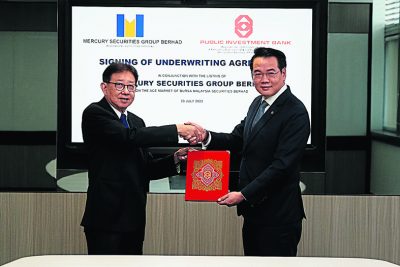 (吉隆坡20日讯)Mercury证券集团配合在大马交易所创业板进行的首次公开发行(IPO)活动,今日与大众投资银行签署股票包销协议。