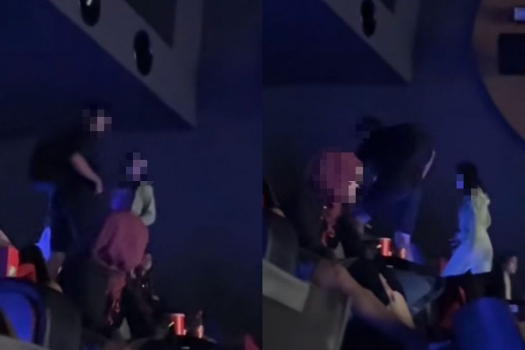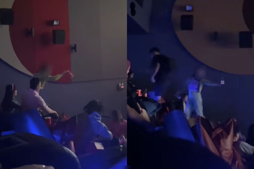 (八打灵再也22日讯)看电影时最怕遇到“奇葩”观众,一名网民揭露到电影院观看《芭比》电影时,一对情侣竟不停喝酒聊天,打扰其他人观影,俩人被要求噤声时,喝醉酒的女子竟把手中的酒精饮料抛向观众,甚至爆粗和比不雅手势,行径恶劣!