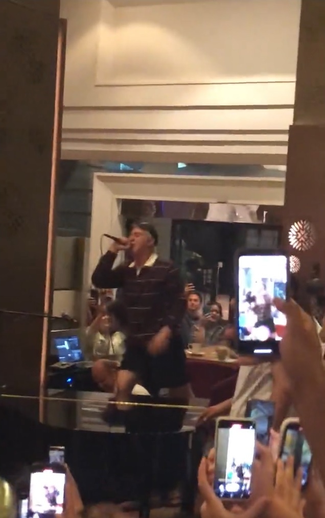 根据网上流传的视频,本应在GVF音乐节第二天演出的他们,在其住宿的酒店大厅现场演唱,而民众也随即挤满大厅观看。