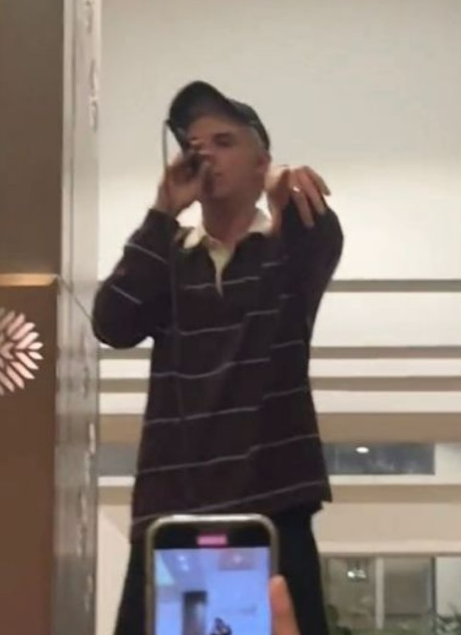 他在Instagram发布限时动态“预告”会在酒店大厅演唱一些歌曲;不久后,他也真的现身为现场民众演出。