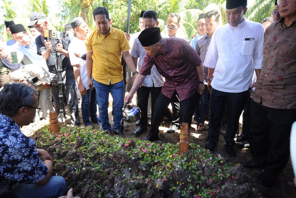(笨珍24日讯)国内贸易及生活费部长拿督斯里沙拉胡丁的遗体于今日中午安葬在家乡甘榜实叻角马来墓园,副首相拿督斯里阿末扎希也赶到墓园与他作最后的道别。