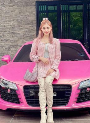 23岁的玛莎在Instagram上发布数张照片,当中她没有佩戴头巾,染了一头粉红色长发,穿着粉色系列衣服,与一辆粉红色跑车合照。
