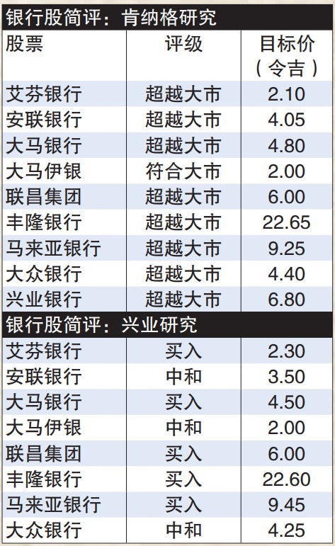 与此同时,兴业研究分析员维持银行领域“增持”评级,首选股为马来亚银行(MAYBANK,1155,主板金融服务组)、丰隆银行(HLBANK,5819,主板金融服务组)和联昌集团。