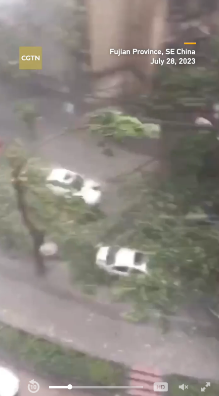 除此之外,中国官媒《环球网》的英文频道《CGTN》在7月28日的“中国再次对杜苏芮台风发布最严重的警报”(China renews most severe alert for Typhoon Doksuri)报道中使用此影片,并指出影片中的地点在福建省。