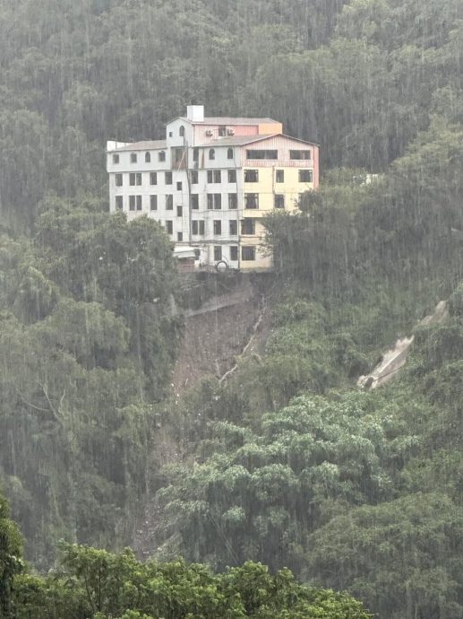 台湾南投县仁爱乡雨势惊人,其中庐山温泉区丽来温泉饭店地基掏空流失,有整栋倒塌风险,县府观光处指出,丽来饭店已经歇业,参与埔里福兴温泉区迁建计划,已无游客入住、无人上班。