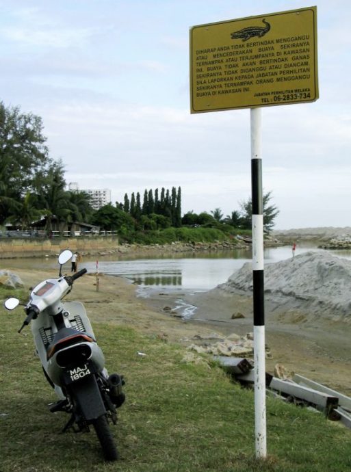 在马六甲和森美兰州交界处,有一条宽100至200公尺的宁宜-林茂河(Sungai Linggi – Sg. Rembau)。此河从宁宜河口起,一直到上游林茂支流的两旁河岸,依然保存着相当天然的红树林生态。好多年以前,我就听说过那里有鳄鱼,也看过河岸边有鳄鱼的告示牌。