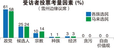 “61%各族受访者表示,政党是他们在投票时最重要的考量因素,25%则表示会考量候选人本身。