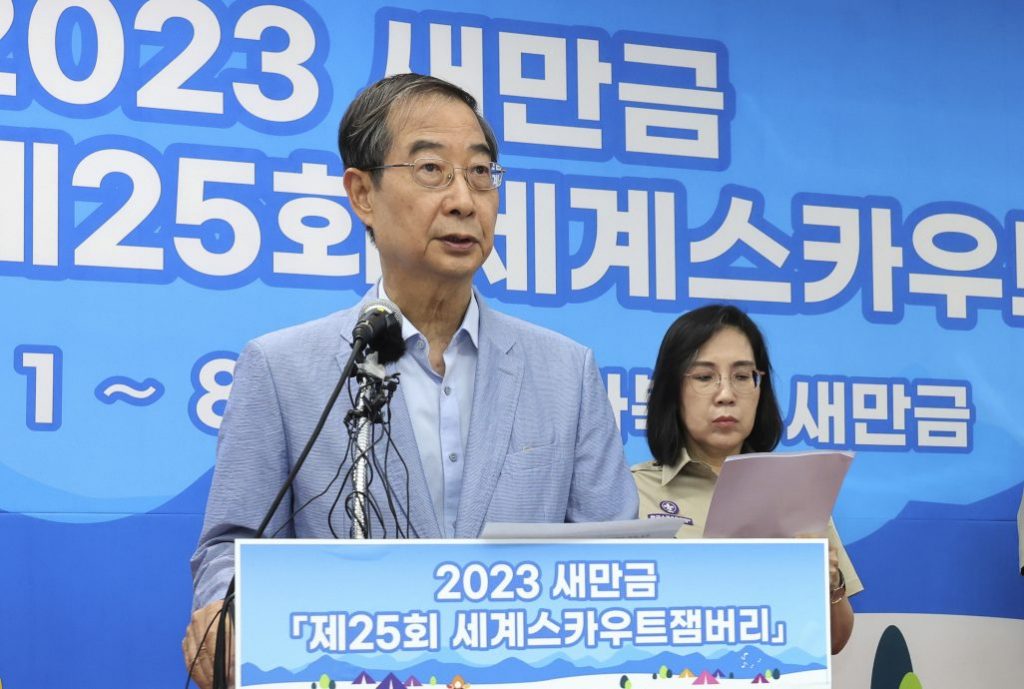韩国总理韩悳洙周六在新闻发布会上表示,韩国决心按计划继续举办该活动,一直到8月12日。他承诺采取额外的安全措施,包括增加医护人员、冷气车辆以及提供遮荫结构。