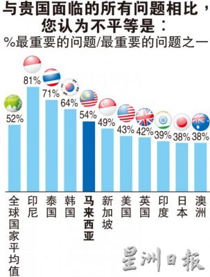 调查指出,54%的大马受访者认为不平等是最重要的问题之一。