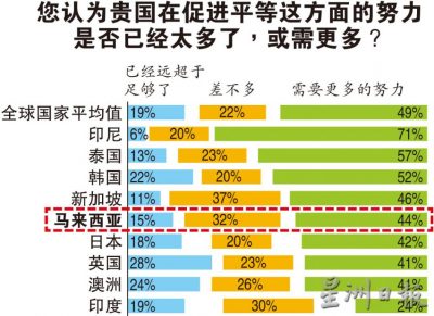 “44%受访的大马人认为,我国在促进平等方面需要作出更多的努力。”