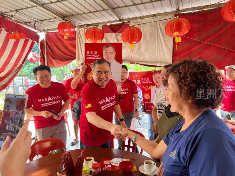 行动党秘书长陆兆福在森州州选捍卫真纳议席,由于贵为党最高领导必须6州巡回走动,让他这两周在选区的时间并不多,来自森州内外的行动党领袖纷纷组成最强后援队伍,轮流到访真纳,让选情保持热度,确保万无一失。