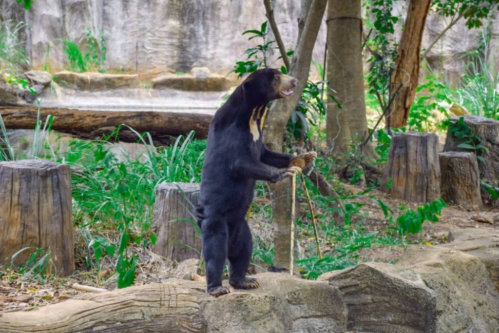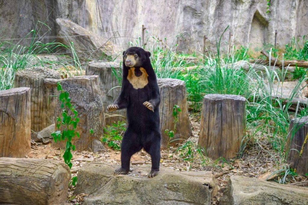 马来熊双脚站立行走 泰国动物园来揭秘