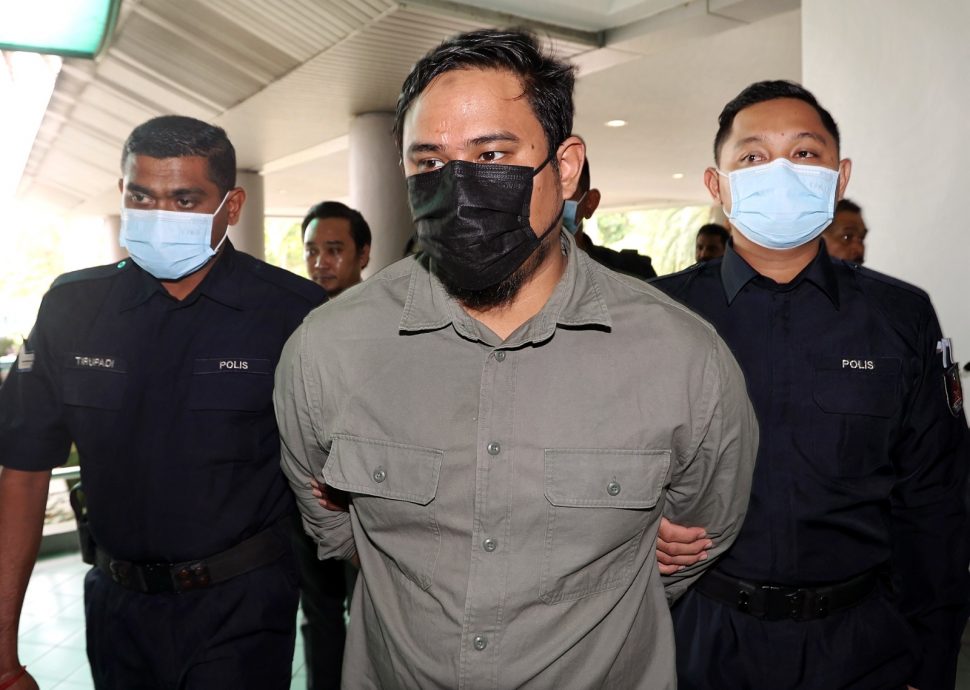 被告莫哈末沙菲克(37岁)今日身穿长袖衬衫,带着黑色的口罩,双手被铐在背后,抵达推事庭。