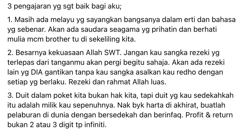 一名女子再丽娜近日在脸书分享一段,指她有一次在排队购买时,遇到一名好心的男子看到业者开档时一时心急打翻准备好的一盒荷包蛋,自掏腰包付给业者50令吉,让她有感而发。