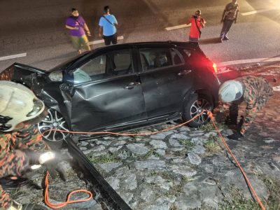(八打灵再也13日讯)一辆轿车失控撞路肩,印裔女司机惨被夹困在车内不省人事,随后由医护人员证实她已死亡。