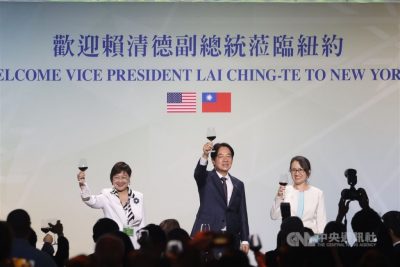 (纽约14日综合电)台湾副总统赖清德出访巴拉圭,途中过境美国纽约。赖清德过境纽约第二天,当地时间星期日中午,出席在曼哈顿举办的宴会,会中赖清德强调,无论极权主义对台湾的威胁有多大,绝对不畏惧退缩,会坚持民主自由的价值,只是场外出现上百名中国侨胞在门口抗议,还一度跟美东信赖台湾后援会的成员爆发口角。