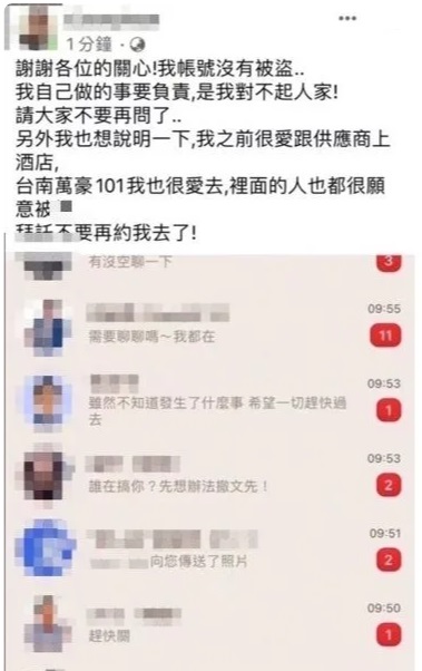 消息曝光后引发轩然大波,许男同事好友也纷纷传讯关心,怀疑许男是否被盗帐号。