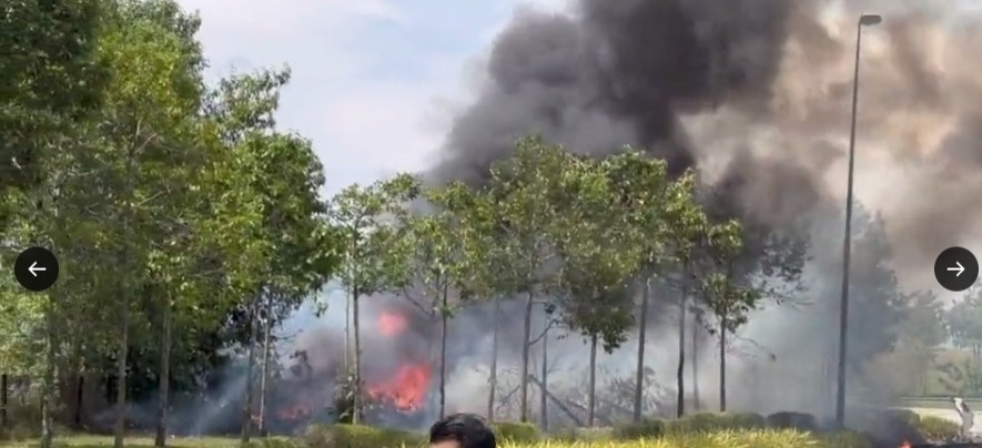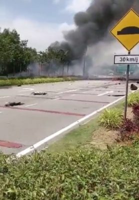根据民众从事故现场拍摄的视频和社媒流传的贴文,事故发生后,目前沙亚南Elmina路段已被关闭以进行援救工作,而烧焦的飞机部件散落在马路上,现场黑烟冲天。