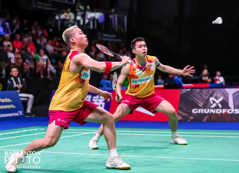 赛会4号种子谢定峰与苏伟译今晚在哥本哈根世界羽球锦标赛男双半决赛,首次硬碰韩国的9号种子姜敏赫与徐承宰,最终以21比23、13比21吞败,无缘连续两届赛会晋级决赛。