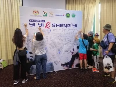 天然资源、环境气候变化部副部长范长锡今早出席欢送熊猫“谊谊”和“升谊”回中国仪式,他在主题背板上写道:谢谢谊谊和升谊的一路相随在马来西亚。