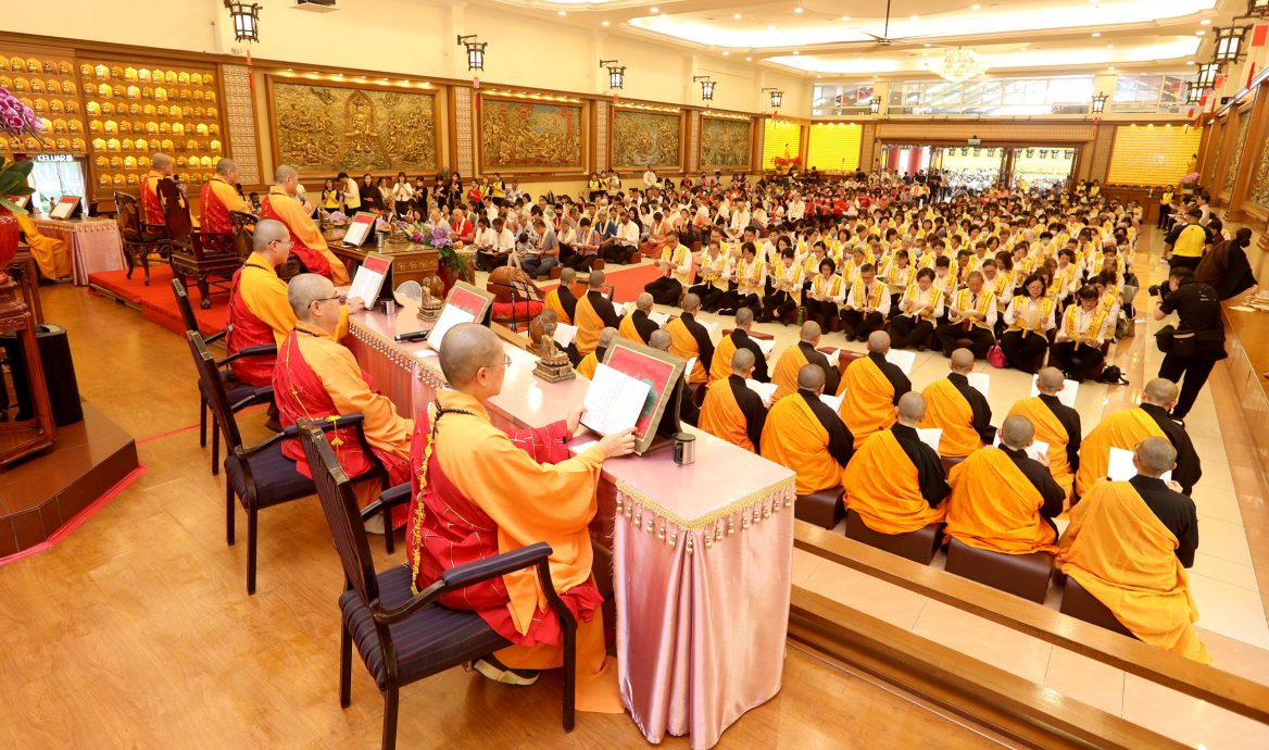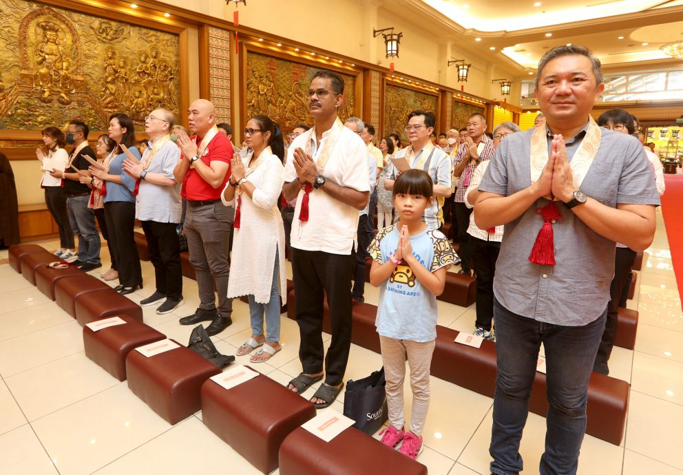 供僧法会于上午9时30分在大雄宝殿进行,非常庄严殊胜。佛光人、功德主、护法信徒和贵宾们在法师的带领下唱诵《佛说盂兰盆经》,随后由国际佛光会马来西亚联合会会长林汶阶、马来西亚中马协会会长拿汀斯里杨翠莲供上果仪,再由新马泰印教区总住持觉诚法师开示。