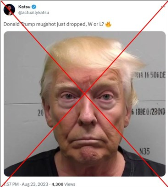 此外,在社媒X上也有许多使用人工智能绘图的“特朗普监狱大头照”,企图以假乱真。