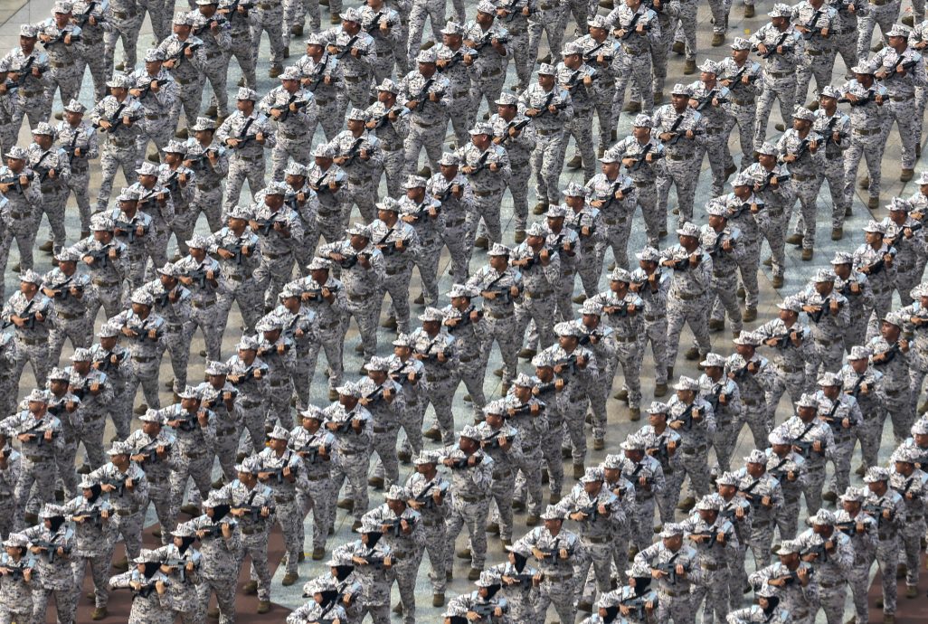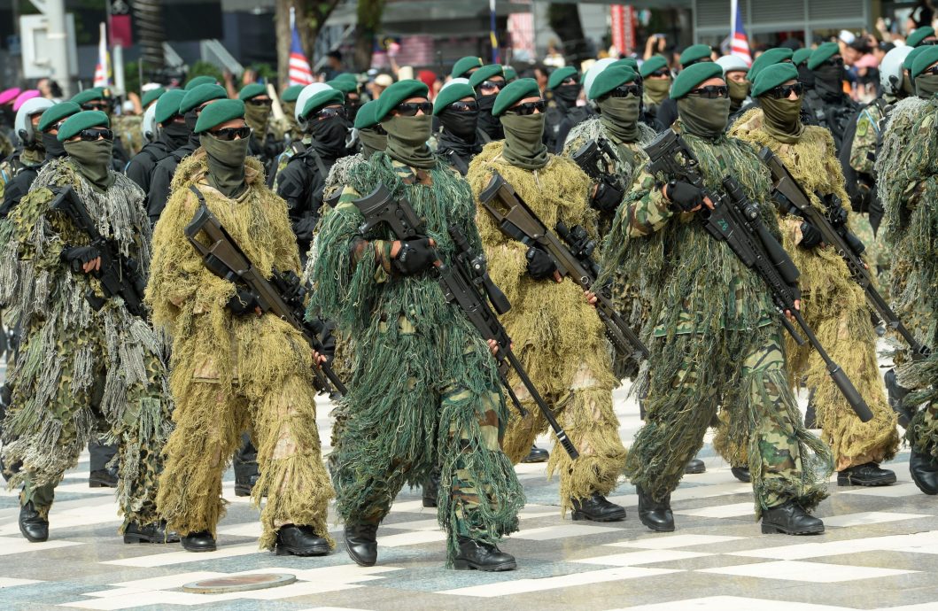 国防卫队借由整齐划一的动作与步伐,在国庆日这天向国家传递祝福,展示国防卫队平日训练有成。(图:马新社)